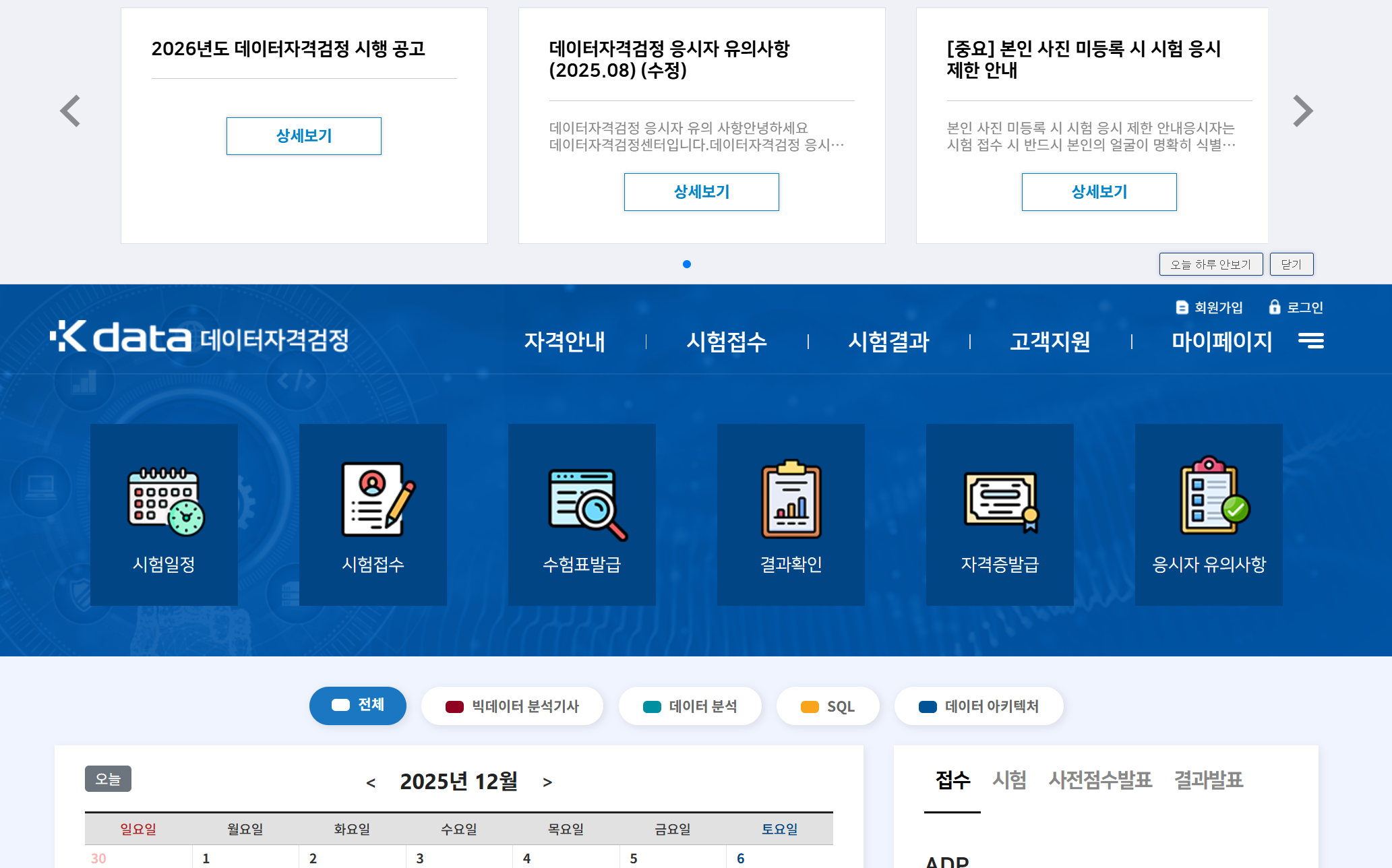 - 국가공인 데이터분석 준전문가(ADsP): 데이터자격검정 센터 바로가기