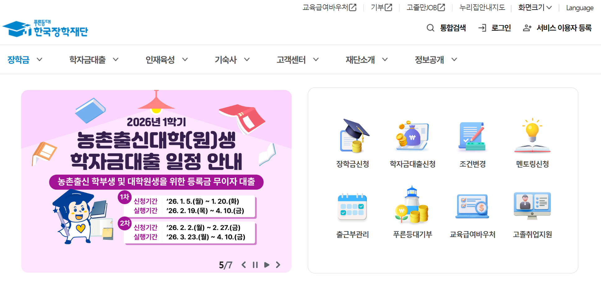 | 등록금 대출 | 1. 5. ~ 5. 20. | 마감일 18시 종료 |