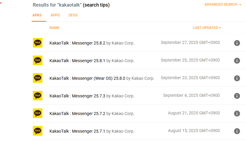 - kakaotalk으로 검색 후 낮은 버전 선택